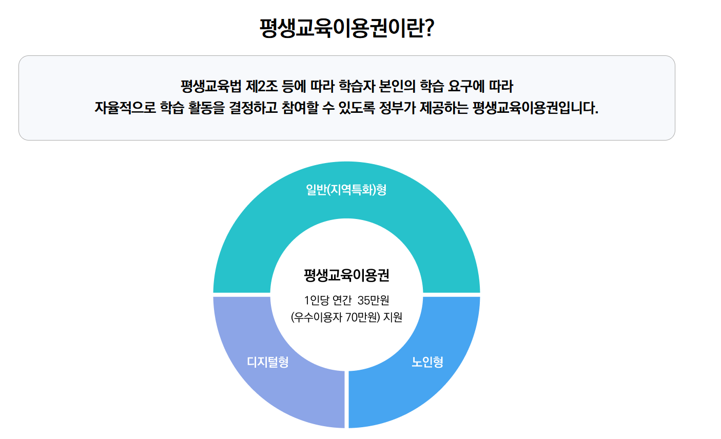- 지원 내용: 평생교육 바우처 사용기관으로 등록된 곳의 수강료 및 해당 강좌의 교재비